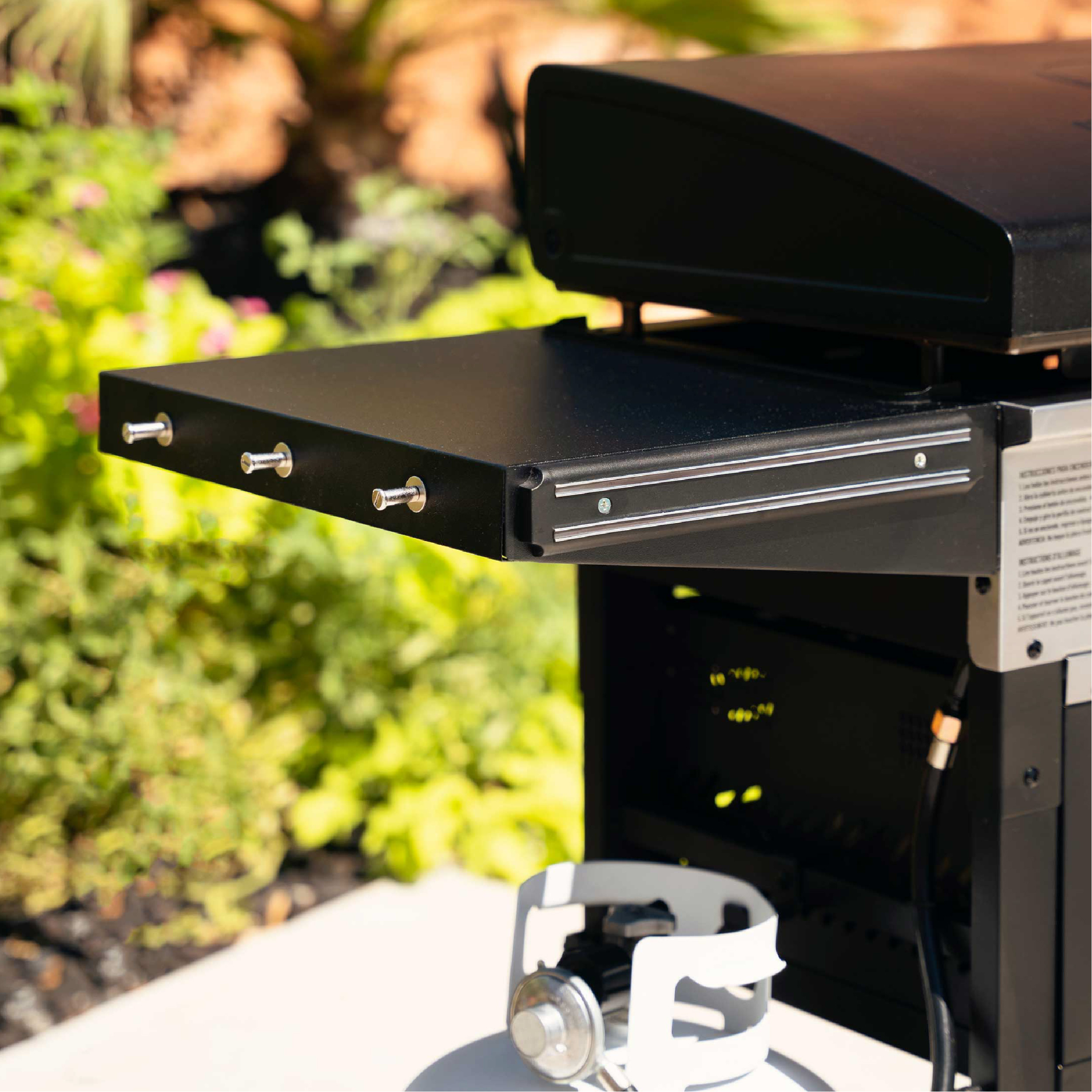 28″ plinska žar plošča z velikim kuhališčem in dvema toplotnima conama ter vgrajenim cvrtnikom na vroči zrak (4 L) in grelnim predalom (4 L). Vključen pokrov, dvojni zložljivi stranski polici s kljukami, magnetna letvica za orodje, električni vžig, patentiran zadnji odvod maščobe in štiri zaklepna kolesa. Kabel 1,75 m za cvrtnik na vroči zrak Airfrayer.