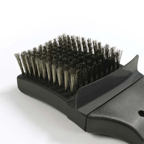 Krtača je zasnovana tako, da temeljito očisti žar rešetke, ne da bi jih poškodovala. Ščetine iz nerjavečega jekla učinkovito odstranijo zapečeno maščobo in ostanke hrane, medtem ko inovativna oblika glave omogoča optimalen pritisk na rešetke.