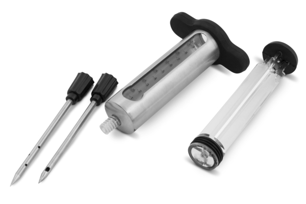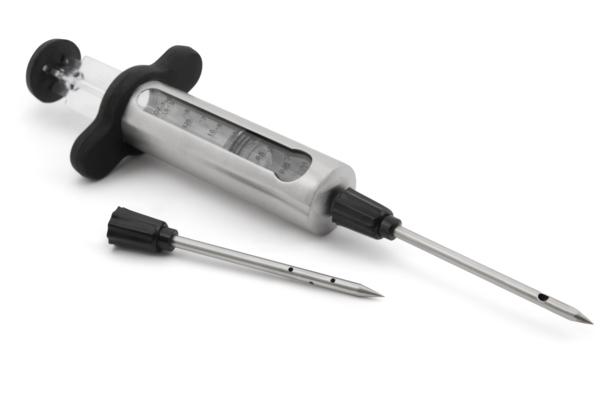- Dve različni igli – ena tanka za tekoče marinade in ena debelejša za gostejše omake in začimbe.