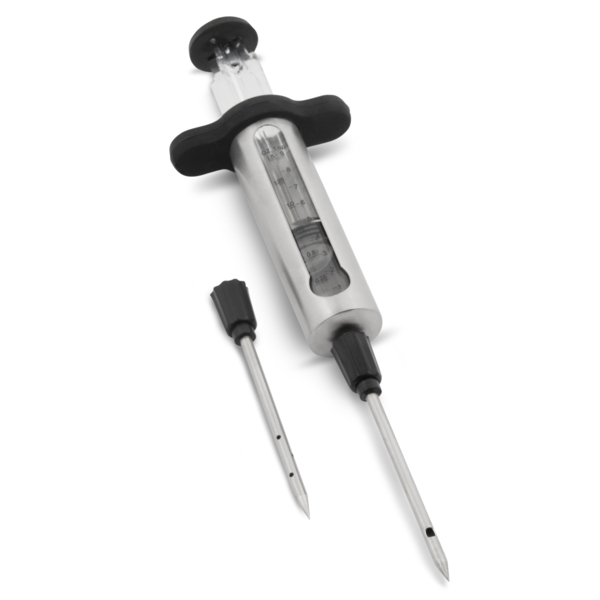Ta profesionalni injektor omogoča enostavno vbrizgavanje marinad, začimb in tekočin globoko v meso. Vključuje dve igli – za gostejše in redkejše marinade ter merilno okence za natančno doziranje. Idealno za žar mojstre in ljubitelje BBQ!