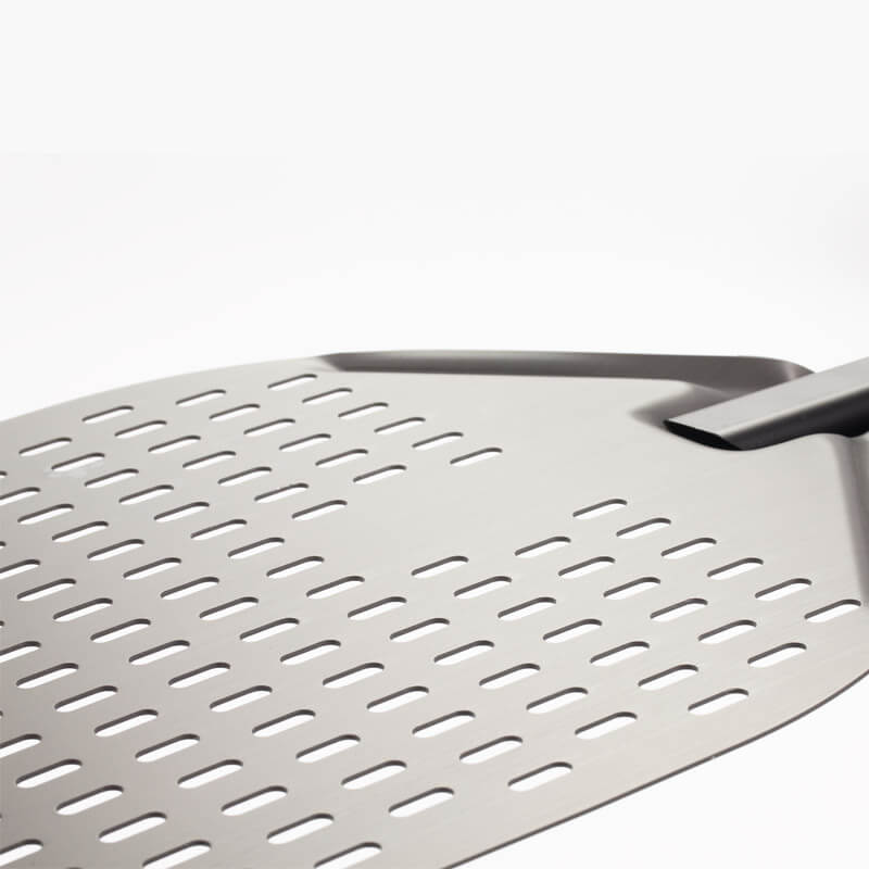 - Lopar za pico (shovel) – idealen za enostavno prenašanje pice z delovne površine v peč. Opremljen s perforacijo, ki omogoča, da odvečna moka odpade, kar preprečuje žganje, dimljenje in grenak priokus pri peki.