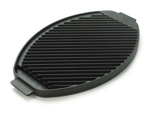 BroilKing obojestranska litoželezna plošča z rebrasto in gladko površino ponuja popolno vsestranskost za pripravo različnih jedi na žaru.