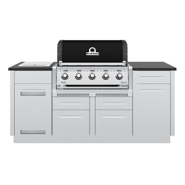 Broil King Regal™ 520 BI je visokokakovosten vgradni plinski žar, zasnovan za kulinarične navdušence, ki želijo svojo zunanjo kuhinjo opremiti z zmogljivim in elegantnim žarom. S petimi Dual-Tube™ gorilniki iz nerjavečega jekla in naprednimi funkcijami zagotavlja enakomerno porazdelitev toplote ter vrhunske rezultate pri peki na žaru.