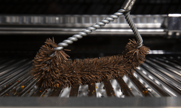 2. S krožnimi gibi očistite rešetke in kote žara ter odstranite ostanke maščobe in hrane.
