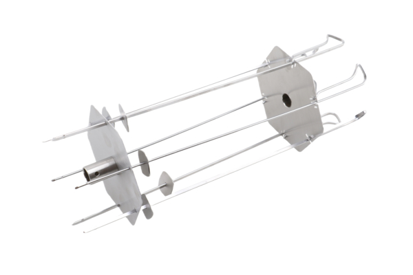 Nerjaveči nosilec za ražnjiče, ki omogoča enakomerno pečenje brez ročnega obračanja. Združljiv z The Bastard Pizza-Rotisserie Large.